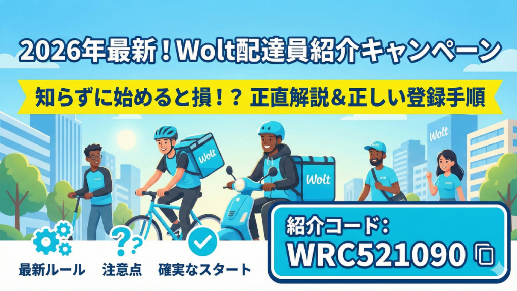 このページでは「Wolt」の配達員に特化した情報を発信しています。配達の仕事を始めたい方へ向けた登録方法や必要な準備、報酬の仕組みはもちろん、効率的に稼ぐコツや確定申告まで、実体験に基づいたノウハウを公開。あなたの「知りたい」に応える情報を網羅しています。