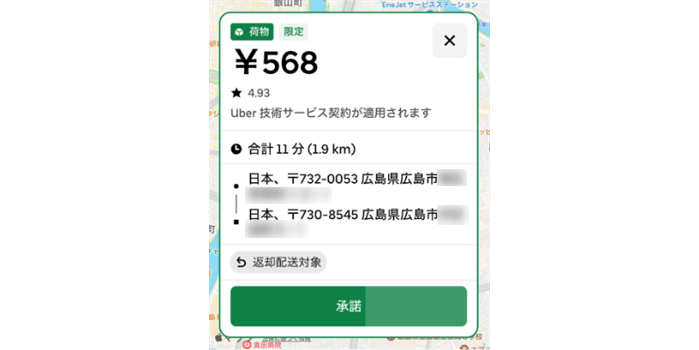 5. もし受取人が不在だったら?(返却配送): Uber Eats の配達と異なり、Courierでは受取人が不在で荷物を渡せなかった場合、**送り主へ荷物を戻す「返却配送」**を行うことができます 。この返却配送についても、配達料が支払われます 。