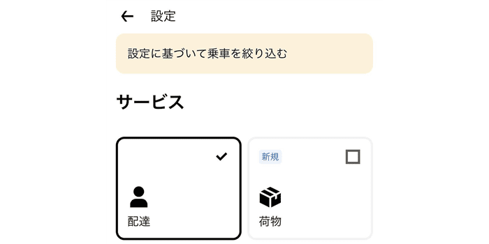 1. アプリの設定 :対象となるパートナーは、Uber Driverアプリの「設定 > サービス」メニュー内に「荷物」という項目が追加されます。ここで設定をオンにすると、Courierの配達依頼が届くようになります 。 2. リクエストの見分け方 :配達リクエストが来た際、オファーカードの左上に**「荷物」のアイコン**が表示されます 。これがCourierの配達の目印です。 3. ピックアップ場所 :Uber Eatsのようにレストランや加盟店からピックアップするとは限りません。依頼者が指定した場所(オフィスや個人の自宅など)へ荷物を受け取りに行きます 。