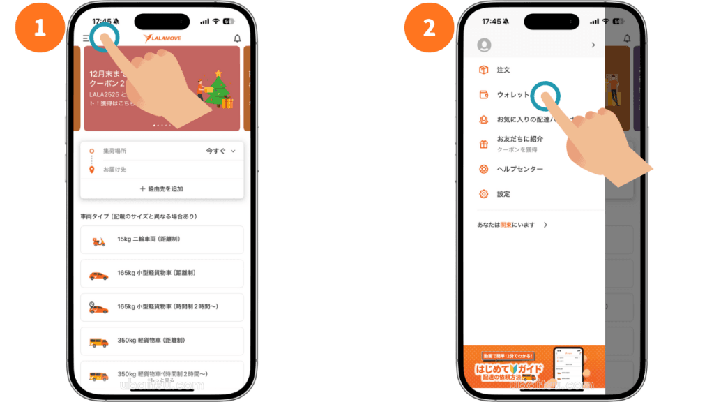 ララムーブの支払い方法は、大きく分けて「現金払い」と「Lalamoveウォレット(キャッシュレス決済)」の2種類に対応しています。