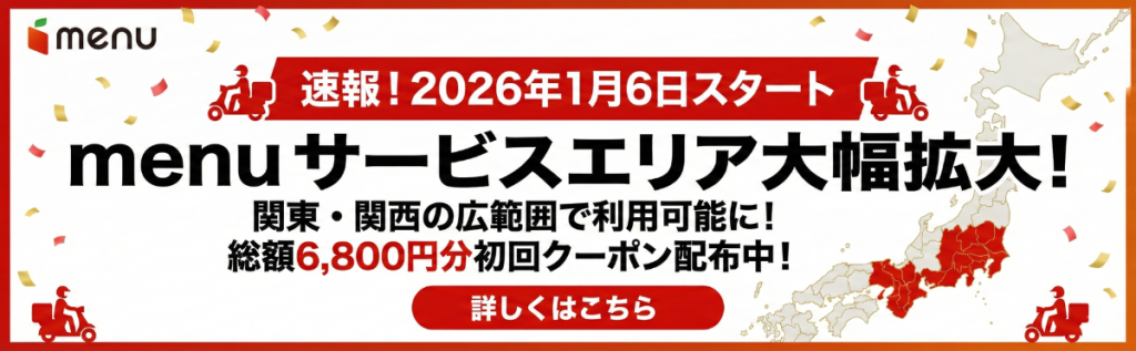 テイクアウト&デリバリーアプリ「menu(メニュー)」の最新配達エリアと、今すぐ使えるお得なクーポン情報を分かりやすくまとめました。