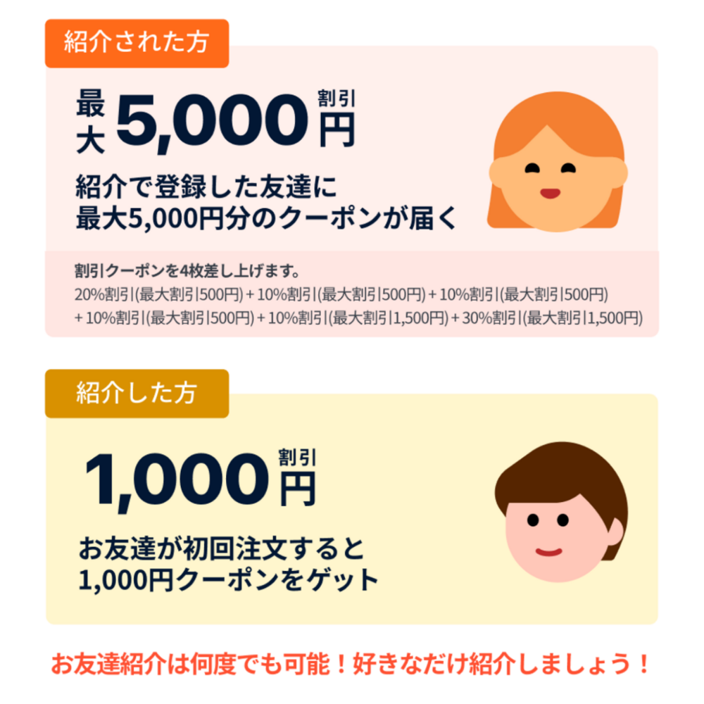回数ウェルカムクーポンお友達紹介クーポンどっちが得?
