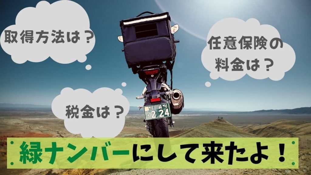 Uber Eats(ウーバーイーツ)などの配達で使うバイクの緑ナンバー取得を実際に行いました。緑ナンバーに変更することのデメリットや任意保険の料金、税金や自賠責に関する疑問から、個人での取得方法や必要書類を解説。またツーリングなどプライベートでも使えるか?などの疑問にもお答えしています。 -
