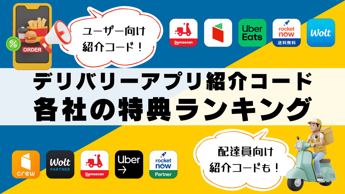 今回は、各社デリバリーアプリのキャンペーン情報を徹底分析し、「お友達紹介コードの特典ランキング」を作成しました。