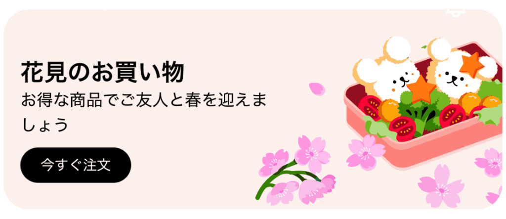 ■ キャンペーン内容:Uber Eats からの注文で、西友での商品合計代金が20%オフになります。